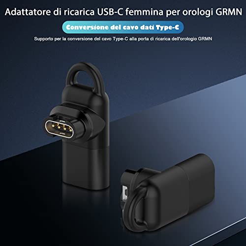 NEWZEROL 2 Pezzi Adattatore di Ricarica USB C Compatibile per Garmin Fenix 7/7S 7X/Forerunner 965/265/265S/Instinct 2/2S/Venu 2/2S, [con Cordino] Adattatore Caricabatterie per Orologi - Nero