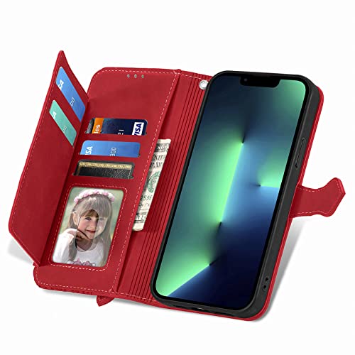 NEXCURIO Custodia a Libro Cover Portafoglio per Apple iPhone XR Flip Case in Pelle Fiori Donna con Tasca Zip Porta Carte Laccio Supporto Antiurto - Rosso