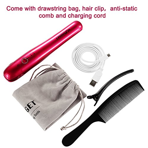 NEXGADGET per capelli ricaricabile mini cordless ferro da stiro con funzione Power Bank (2900 MAH/3.7 V) e temperatura regolabile da viaggio per piastra per lisciare i capelli e dispositivi USB di ricarica