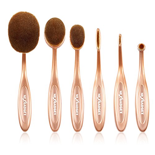 Nexgadget Pennelli Make Up Set 6 Pezzi Pennelli Ovali Spazzole da Denti Professionale per Trucco con Design Ovalizzato Spazzolini Cosmetici Per Cipria Correttore Contorni Fondotinta Sfumature Sopracciglia e Matita per Linee degli Occhi, Dorato