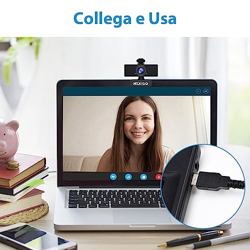 【Webcam Full HD 1080P】Alimentata da un CMOS 1080p FHD a due MP, la webcam NexiGo N60 produce video eccezionalmente nitidi e chiari a risoluzioni fino a 1920 x 1080 con 30 fps. La lente di vetro da 3,6 mm fornisce un'immagine nitida a distanze fisse ed è ottimizzata tra 19,6 pollici e 13 piedi, rendendola ideale per quasi tutti gli usi interni.