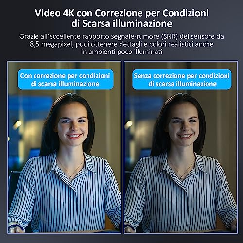 【Memoria Flash Integrata e Sicurezza ai Massimi Livelli】La memoria flash integrata nella PC webcam 4K consente di salvare tre diverse impostazioni di immagine e di richiamarle rapidamente. Non è necessario installare software per ottenere la migliore qualità video. Senza bisogno di driver o manutenzione, tenere videoconferenze di qualità professionale non è mai stato così facile.