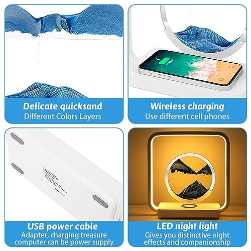 Nexoria Immagine artistica con sabbia mobile, vetro 3D a clessidra del mare profondo, pittura con sabbia a LED che si muove, lampada da tavolo con sabbia fluente, luce notturna (A-blu)