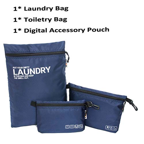 unico imballaggio organizzatori soluzione al vostro viaggio - -6 pc Travel organizzatori imballaggio include: 1PC Large Packing Cube (46 x 35 x 8,5 cm) & 1pc Medium imballaggio Cube (38 x 26,9 x 8 cm) & 1pc Small Packing Cube (30 x 19 x 8 cm) & 1pc Digital accessori custodia (22 x 15 x 3 cm) & 1pc borsa da toilette (27 x 19 x 3 cm) & 1pc Laundry Bag (42 x 30 x 5 cm)