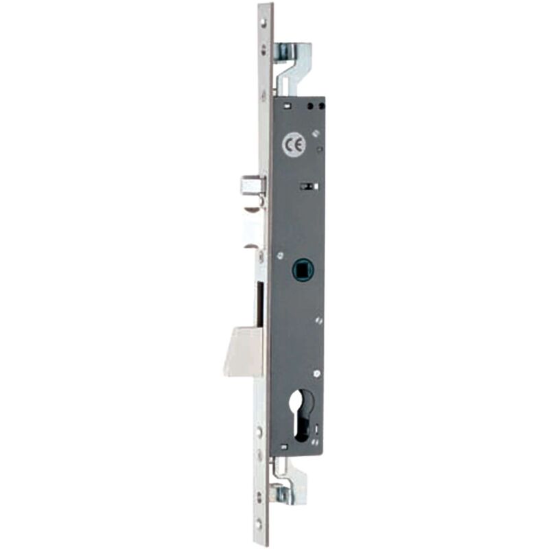 Art. 7838.02 triplice chiusura. scrocco autobloccante reversibile. cilindro sagomato. quadro maniglia 8 mm frontale inox 22 mm entrata mm 35