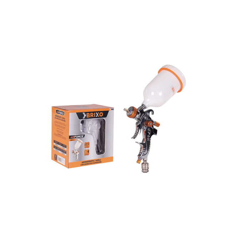 Corpo in alluminio, serbatoio superiore in nylon cc. 600, getto preciso e costante, ugello in ottone foro ø 1,4 mm. - attacco filetto m 1/4. erogazione 100/250 ml/min. tecnologia h.v.l.p. (per un consumo di materiale e una dispersione di sostanze inquin