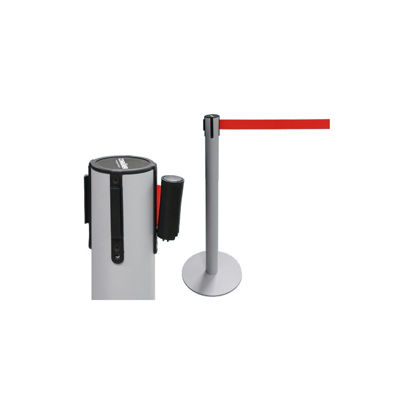 Solida colonna in acciaio verniciato a polveri - ø 60 x h90 cm. solida base in acciaio verniciato a polveri spessore 10 mm. - ø 31 cm. nastro estensibile in nylon colore rosso - 2,5 mt. x h5 cm. peso 7,5 kg.