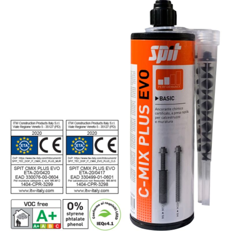 Mix plus evoin resina universale certificata, a presa rapida. per calcescruzzo e muratura. assenza di stirene e bassissimo contenuto di solventi, idonea per uso interno. bombola da 300 cc
