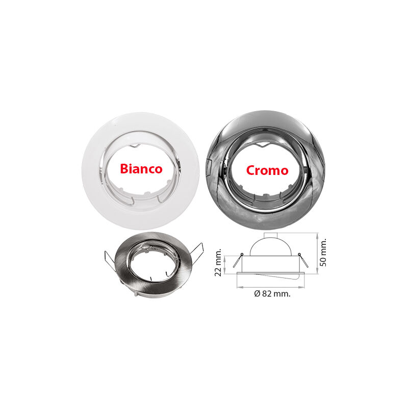 Faretto da incasso orientabile in lega alluminio per lampade led. portalampade con attacco gu10 cl ii. potenza max 50 watt. ip20. lunghezza cavo 140 mm. (lampada ø50 mm. non in dotazione) colore cromo