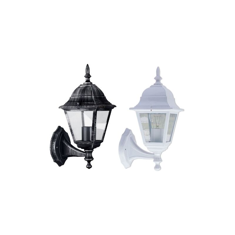 In lega di alluminio pressofuso, schermo in vetro, 4 facce. attacco e27 - ip44. dimensioni 15x17xh41 cm.