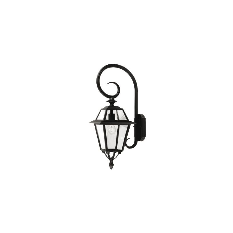 In lega di alluminio nero finitura anticata, schermo in vetro, 4 facce. attacco e27 - ip44. dimensioni 33xh71 cm.