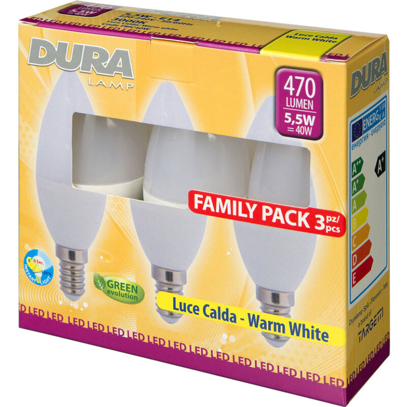 Led set 3 oliva w5,5e14 lumen470-3000k calda