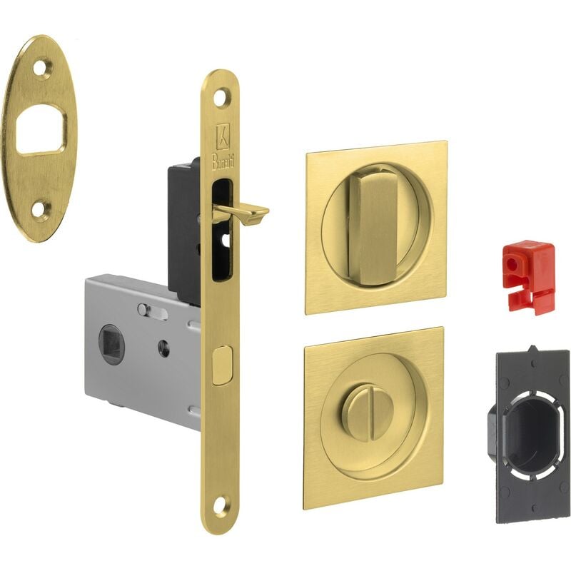In acciaio. per porte con spessore da 34 a 50mm. non necessita di ditale di trascinamento. composto da:- nicchia quadra ¦ 48mm con nottolino- nicchia quadra ¦ 48mm con vite di emergenza- serratura g500t entrata 50 mm, frontale 160x16.finitura oro lucido