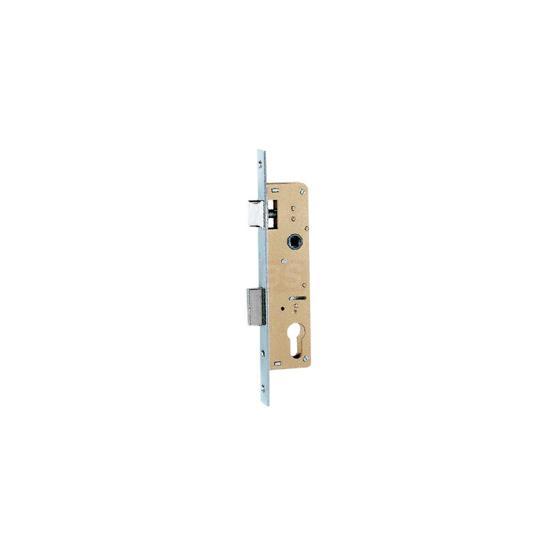 Per montanti di profilati metallici, a 1 mandata, con scrocco e catenaccio prolungati quadro maniglia, testata 22 mm., entrata 20 mm.;