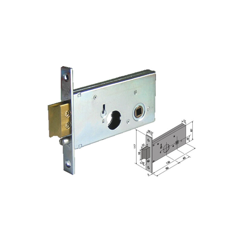 Da infilare, scrocco reversibile a 1 mandate, profilo 16 mm., finitura acciaio zincato. cilindro non in dotazione. (cilindro base 54 mm.)
