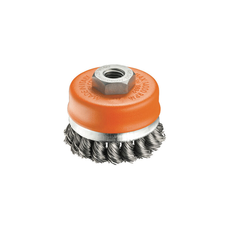 In acciaio fosfatato. con anello di ritenuta. fili diametro 0.50 mm. - attacco m14 - max 14000 rpm. ideale per pulire, satinare, sbavare, rimuovere ruggine e scorie, sverniciare.