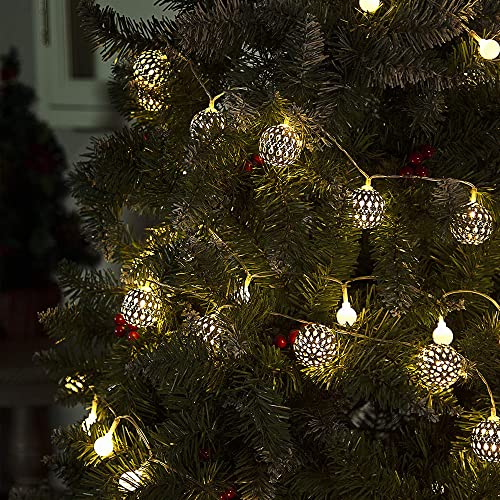 NEXVIN Catena Luminosa con Adattatore EU, 9M 30 LED Luci di stringa palla d'argento Marocco, con Telecomando, 8 Modo di Lampeggiata, Impermeabili, 3 Tipo di Timer, Cavo Trasparente (Bianco Caldo)
