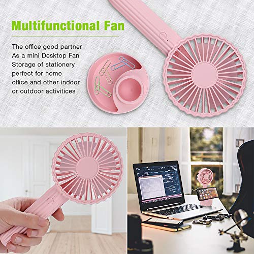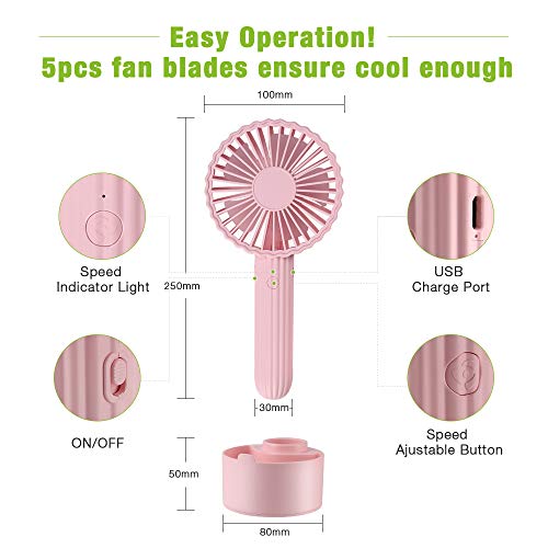 NEXVIN mini ventilatore portatile da esterno e da scrivania, USB ventilatore Ricaricabile, Batteria 2400mAh, 3 impostazione di velocita - Rosa