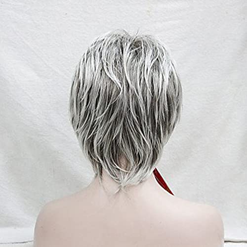 NEZIH Donna Parrucca Sintetica Corta Ondulata Grigia Evidenziata/Balayage Capelli A Strati Taglio Pixie Taglio Con Frangia Parrucche Naturali Costume Parrucca, Accessori Decorativi