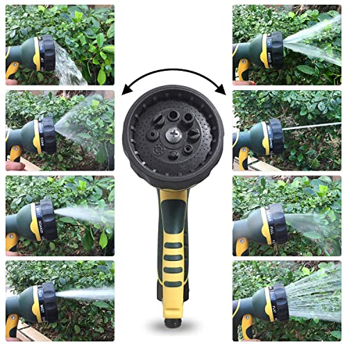 Connettori in metallo solido, evitano perdite e crepe: il connettore in metallo non si rompe, crepe, perdite o corrosione, può resistere alle temperature. Ugello a spruzzo con 8 modalità per soddisfare tutte le vostre esigenze, tra cui giardinaggio, irrigazione, pulizia animali e lavaggio auto o casa.