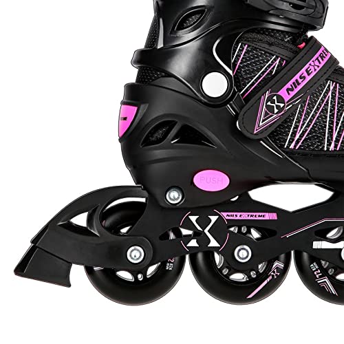 NILS NH11912A - Pattini in linea 2 in 1, misura 35-38, regolabili, colore: Nero/Rosa