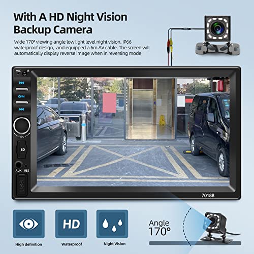NHOPEEW 7" EQ Autoradio Double Din con Mirror Link, Multimedia MP5 Player Bluetooth Handsfree AUX USB SWC FM Receiver + Rear View Camera