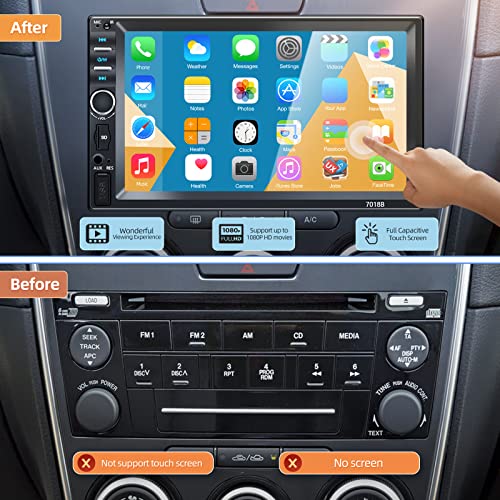 【Guida all'installazione】Le dimensioni di installazione del monitor touch screen da 7 pollici: 178 (L) * 100 (H) mm / 7,01 * 3,94 pollici, Questo audio è conforme a uno standard universale a doppio Din. La linea di autoradio è un p