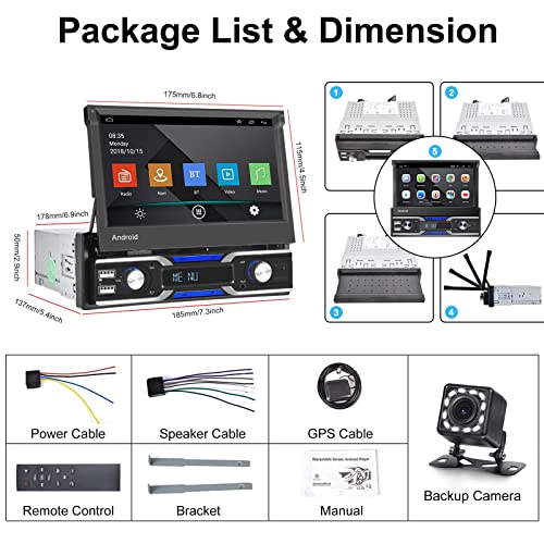 【Sistema Android 10.0】 Autoradio a singolo DIN con sistema Android 10.0, 1 GB (RAM) + 16 GB (ROM). 4-Core Drive, touchscreen capacitivo da 7 pollici HD 1024 * 600 pieghevole manualmente, risposta istantanea, non bloccato.