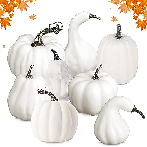 NHYDZSZ 8 Pezzi Zucche Bianche Artificiali, Zucche Finte Bianche, Mini Zucche Autunnali, DIY Zucca Bianche, Formati Assortiti Zucche Bianche fai da te, Pumpkin Decor per Tema Autunno Festa (C)