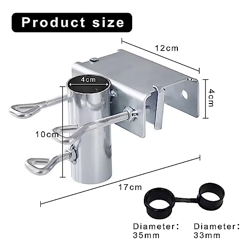 【Facile da usare】Adatto per ombrelloni con un diametro fino a 38 mm. il Supporto per ombrellone per Balcone e terrazza non deve essere forato, è sufficiente posizionarlo sulla ringhiera del balcone e fissarlo con le viti di fermo, quindi fissare l'ombrellone con le viti di fermo.