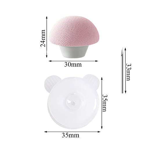 Dimensioni: la dimensione della cartella del piumino a forma di fungo è di 30 x 24 mm, la dimensione del supporto per ciambella trapuntata è di 35 x 35 mm e la lunghezza del perno in acciaio è di 33 mm.