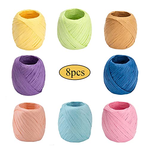Niaciswe Rafia Naturale 8 Rotoli Rafia Colorata Rafia per Uncinetto Spago Colorato Raffia Paper Ribbon Rope Nastri per Pacchi Regalo Nastro di Rafia Carta Rafia Packing Paper Twine String 8 Colori