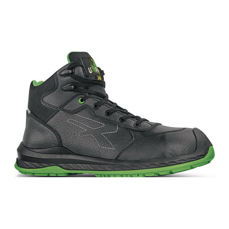 Secondo DIN EN ISO 20345:2011 S3 CI SRC ESD Materiale esterno: microfibra morbida e resistente con un'alta percentuale di materiale riciclato e protezione della punta in PU Soletta Save & Flex PLUS GREEN antiperforazione Plantare: WOW2 GREEN in PU di BASF Suola: 100% PU rigenerato di BASF, resistente all'usura, antistatico, resistente all'olio e antiscivolo Altre caratteristiche tecniche: Guscio di protezione della punta: Composite AirToe Intersuola: Save&Flex More Green