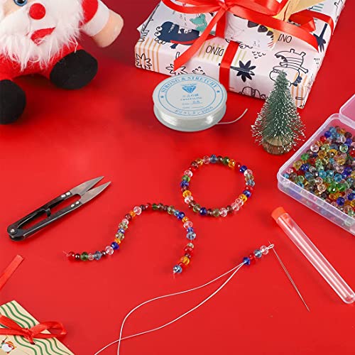 NIANOPKM 6 Pezzi 0.4mm-1.0mm Filo Elastico per Gioielli Filo di Gomma, Filo Trasparente Resistente allo Strappo Lenza con Ago per Perline e Forbici per Braccialetti con Perline (Lunghezza Totale 55m)
