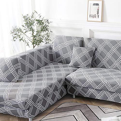 NIBESSER Copridivano con Penisola Elasticizzato Chaise Longue 2-Pezzi Copridivano a Forma di L Lavabile Fodere per Divano Angolare per Soggiorno con Motivi Moderni(Linee,2 Posti + 2 Posti