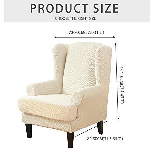 NIBESSER Copripoltrona con Orecchie 2 Pezzi Copripoltrona Poggiatesta in Jacquard Universale Moderno Lavabile Copripoltrona Elasticizzato per Soggiorno Camera da Letto Hotel (Jacquard- Avorio)