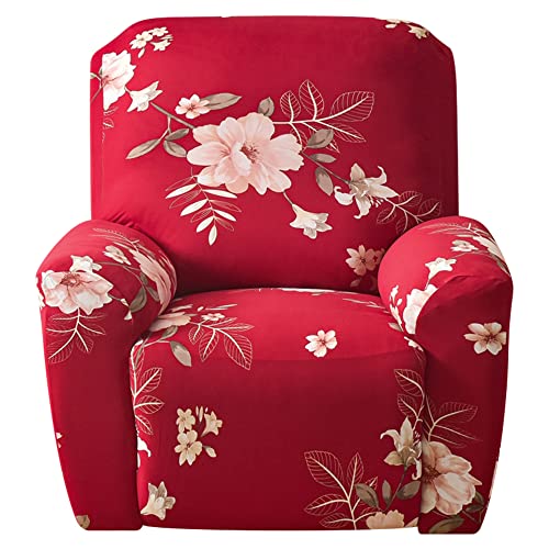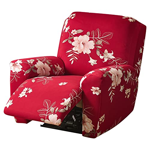 NIBESSER Copripoltrona Relax Reclinabile Universale, Fodere Copripoltrona Reclinabile 1 Posto Elasticizzato Lavabile Rimovibile, Copertura per Poltrona Elettrica Reclinabile(Fiori Rosso)