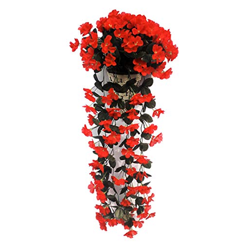 NIBESSER Fiori Finti Pendenti da Esterno Fiori Glicine Artificiali Cadenti da Interno Pianta Finta per Decorazioni 1, 2 Pezzi per Matrimonio Giardino Parete Balcone(Rosso,1 Pezzo)