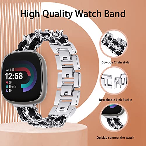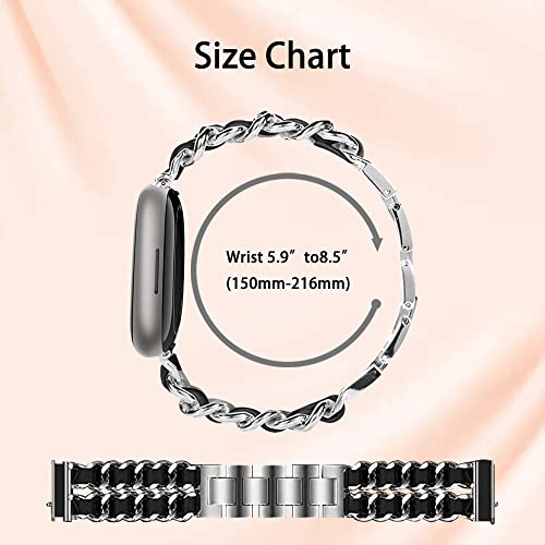 Niboow Cinturino Compatible con Fitbit Versa 4/Sense 2, Donna Cinturino Acciaio Inox Cinturino Compatible con Fitbit Versa 4/Sense 2 - Argento con Nero