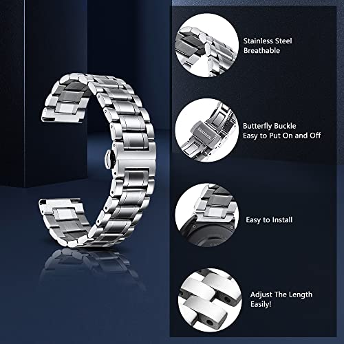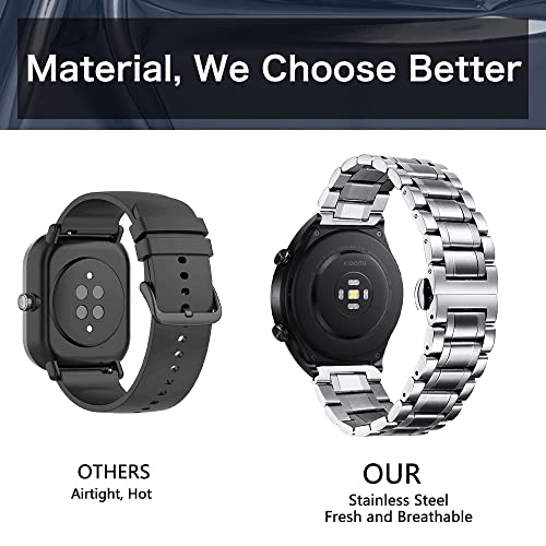 Niboow 22mm Cinturino per Xiaomi Watch S1/S1 Active/Mi Watch, Acciaio Inossidabile Cinturino per Amazfit GTR 4/GTR 3 Pro/Huawei Watch 4/Watch 4 Pro/Garmin Venu 2 - D'Argento