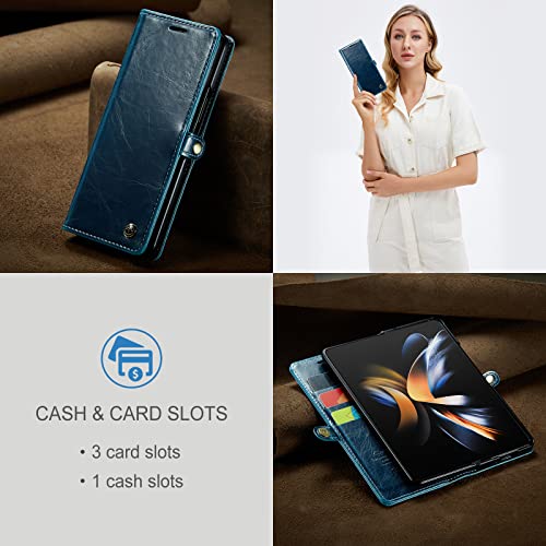 Niboow Cover Compatibile con Samsung Galaxy Z Fold 4, [RFID Blocco] [Slot Schede] [Kickstand], Carta Credito Flip Case in Pelle Portafoglio, RetròAntiurto PU Custodia per Galaxy Z Fold 4 - Blu