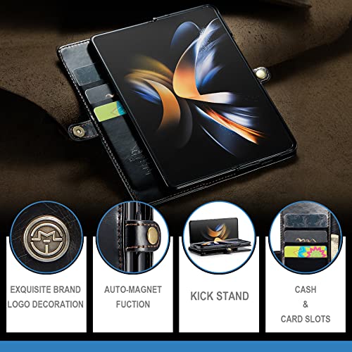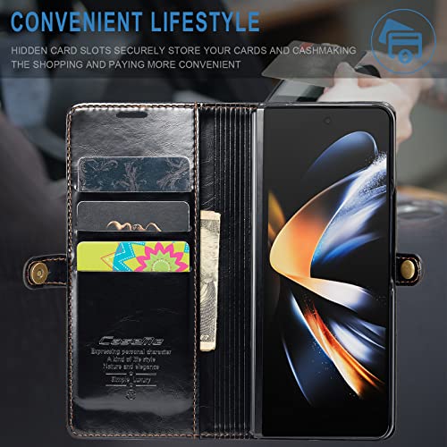 Niboow Cover Compatibile con Samsung Galaxy Z Fold 4, [RFID Blocco] [Slot Schede] [Kickstand], Carta Credito Flip Case in Pelle Portafoglio, RetròAntiurto PU Custodia per Galaxy Z Fold 4 - Nero