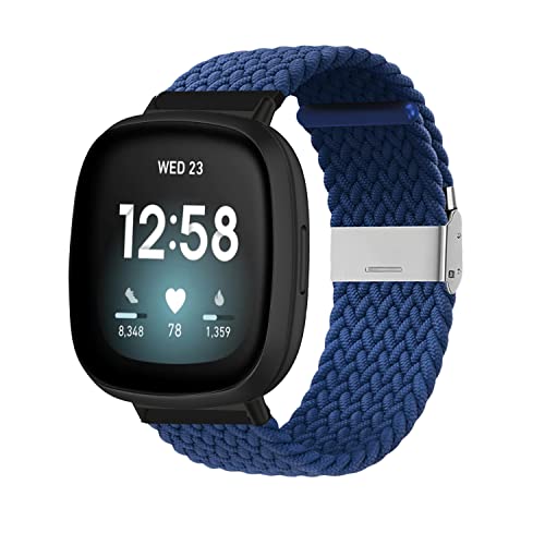 Niboow Intrecciato Cinturino Compatible con Fitbit Versa 3/Sense, Uomini Donne Sportiva Elastica Nylon Watch Band Cinturino Compatible con Fitbit Versa 3/Sense - Blu