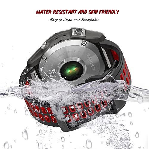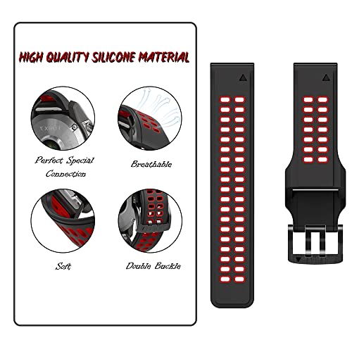 Niboow QuickFit 22mm Cinturino per Garmin Fenix 7 Pro Solar/Fenix 7/Garmin Epix 2 Pro 47mm, Silicone Sostitutivo Braccialetto per Garmin Fenix 6 GPS/6 Pro GPS/5/5 Plus/Garmin Descent G1 - Nero/Rosso