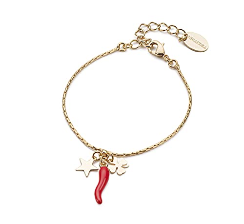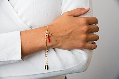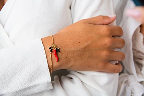 NICANDRA Bracciale Portafortuna Donna - Catena Sottile Oro con Cornetto Scaccia Malocchio e Quadrifoglio