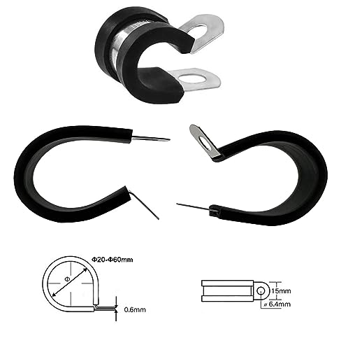 NICAVKIT 10pz 26mm fascette fermacavo in gomma, Foderato in gomma P clips Morsetto per cavi, Gomma fascette stringitubo fascette fermacavi kit acciaio inox