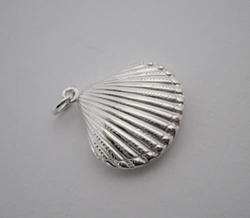 Niceandnoble - Ciondolo a forma di conchiglia di cuore, reversibile, in vero argento Sterling 925