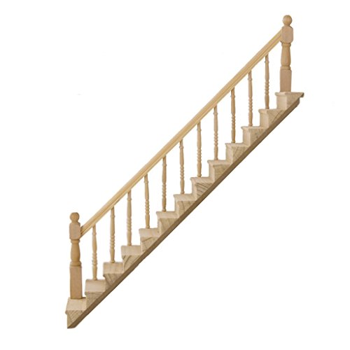 Nicebuty 1: 12 Dollhouse pre-assembled Staircase Wooden stair Stringer step con corrimano sinistra