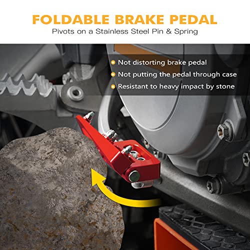 【Pedale pieghevole】 Siamo orgogliosi di presentarvi il pedale del freno di ultima generazione. Può ruotare su un perno e una molla in acciaio inossidabile. L'azione pieghevole consente al pedale di sopportare l'impatto con le rocce, riducendo la possibilità di distorcere il pedale del freno e di far passare il pedale attraverso il caso.