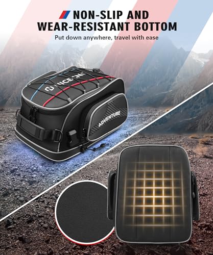 ️【Resistente all'usura e alla schiuma EVA】 Questa borsa posteriore per moto è realizzata in tessuto antiabrasivo e materiale in PVC, che può evitare l'usura causata dalla sabbia e dalla ghiaia posizionata sulla montagna e sul terreno, mentre è foderata con schiuma EVA ad alta elasticità per ridurre l'impatto e migliorare la durata della borsa. L'ampia cerniera e la maniglia rendono più comodo il trasporto. Il design riflettente aumenta la sicurezza della guida notturna.